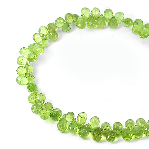 Unheated 69.85 Ct. Briolette Natural Gemstones Green Peridot Beads Length 9 Inch