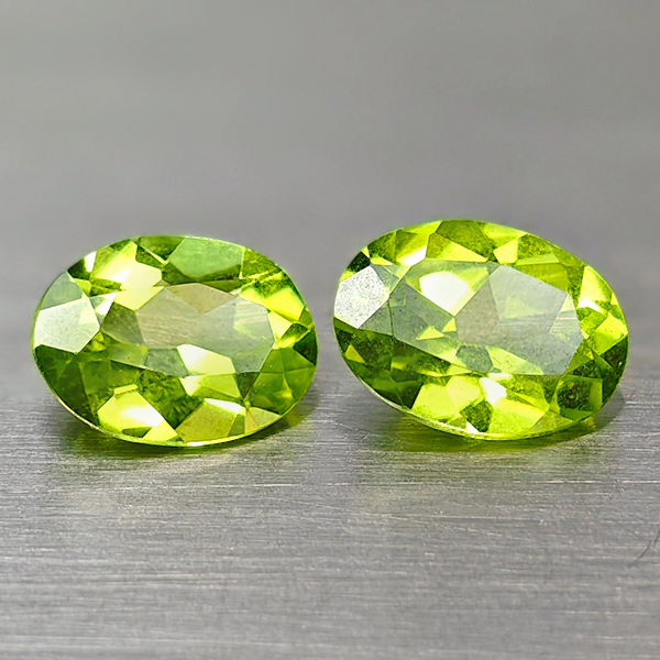 Natural Green Peridot 1.29 Ct. 2 Pcs. Good Cutting Oval Shape 7 x 5 Mm. Gems