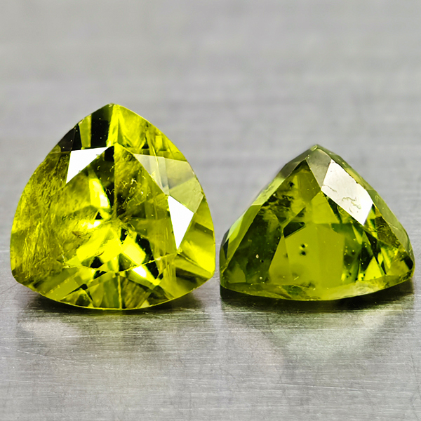 Natural Green Peridot 1.78 Ct. 2 Pcs. Trilliant Shape 6.3 Mm Gemstones