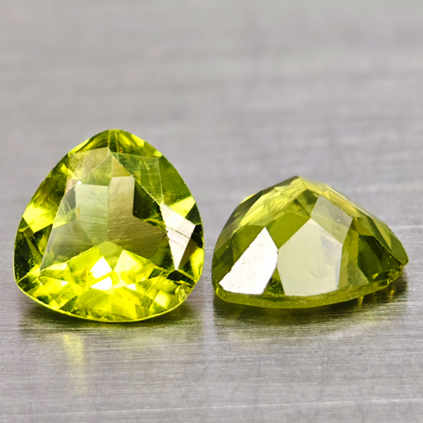 Natural Green Peridot 1.35 Ct. 2 Pcs. Trilliant Shape 6 x 6 Mm. Gems Unheated
