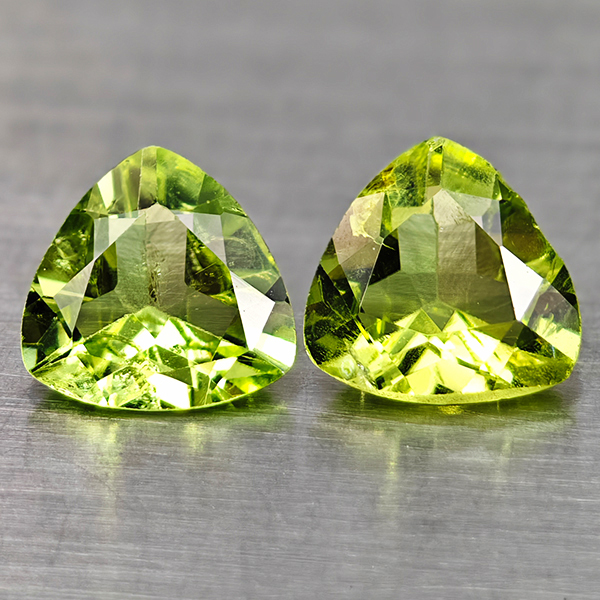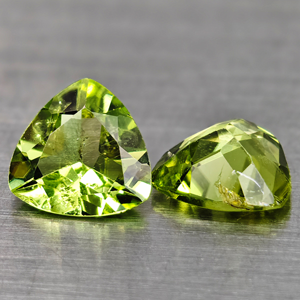 Natural Green Peridot 1.27 Ct. 2 Pcs. Trilliant Shape 5.9 Mm Gemstones