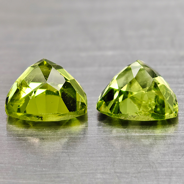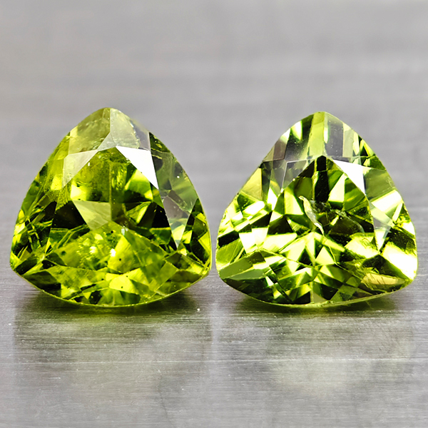 Natural Green Peridot 1.92 Ct. 2 Pcs. Trilliant Shape 6 Mm Gemstones