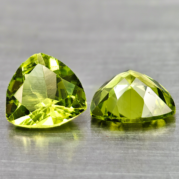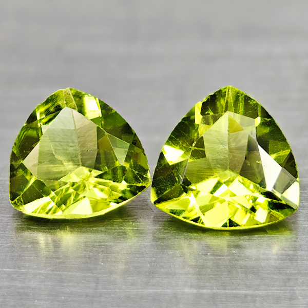 Natural Green Peridot 1.24 Ct. 2 Pcs. Trilliant Shape 6 Mm Gemstones