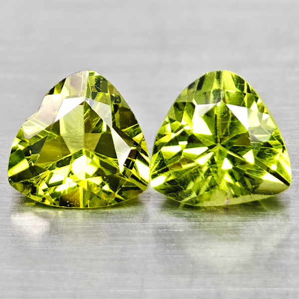 Natural Green Peridot 1.57 Ct. 2 Pcs. Trilliant Shape 6 Mm Gemstones
