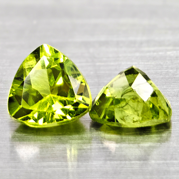 Natural Green Peridot 1.82 Ct. 2 Pcs. Trilliant Shape 6 Mm Gemstones