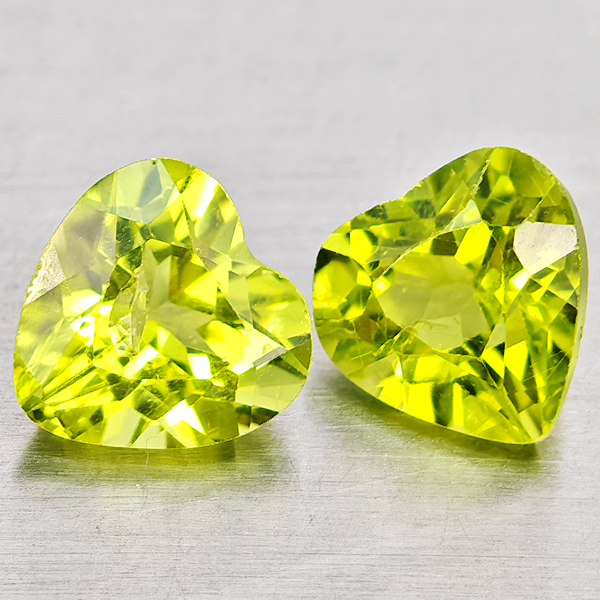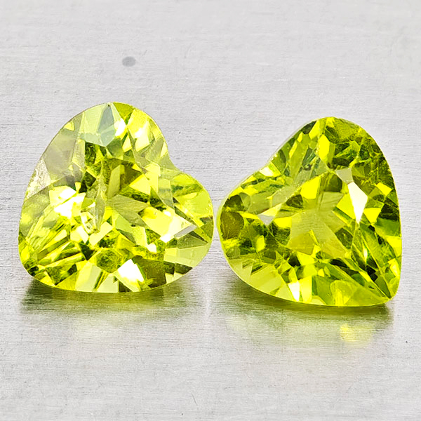 Natural Green Peridot 1.79 Ct. 2 Pcs Heart Shape 5.9 x 6 Mm. Gemstones
