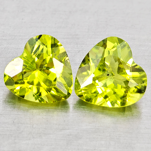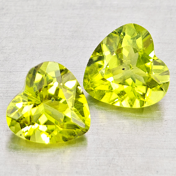 Natural Green Peridot 1.57 Ct. 2 Pcs Heart Shape 6.4 x 6.1 Mm. Gemstones