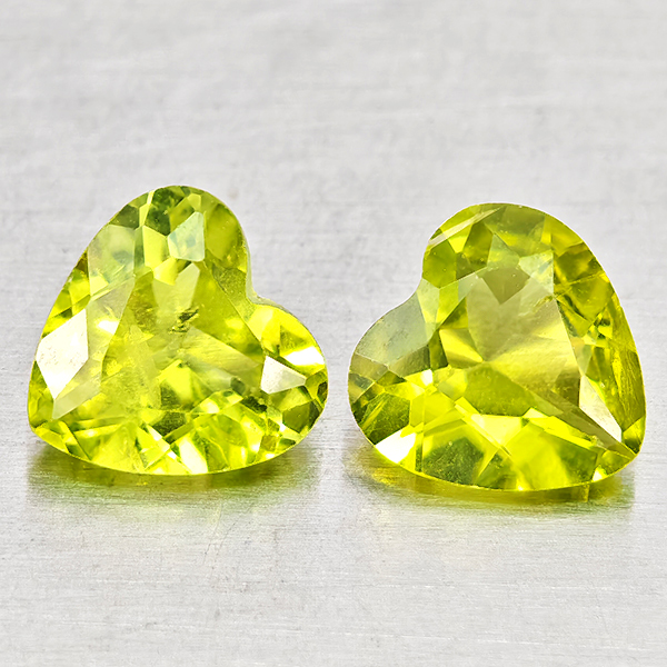 Natural Green Peridot 1.26 Ct. 2 Pcs Heart Shape 5.9 x 5.9 Mm. Gemstones