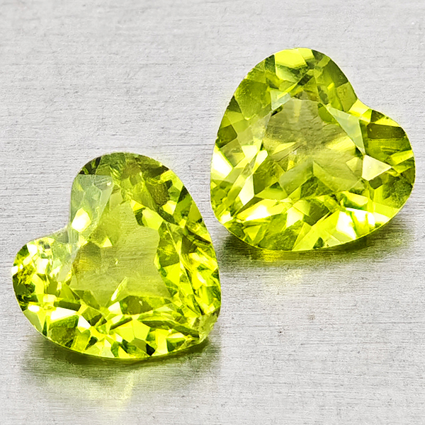Natural Green Peridot 1.53 Ct. 2 Pcs Heart Shape 5.8 x 6 Mm Gemstones