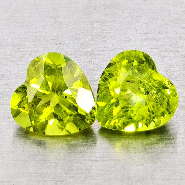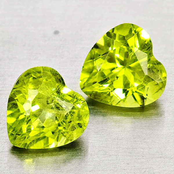 Natural Green Peridot 1.86 Ct. 2 Pcs Heart Shape 6 x 6 Mm Gemstones