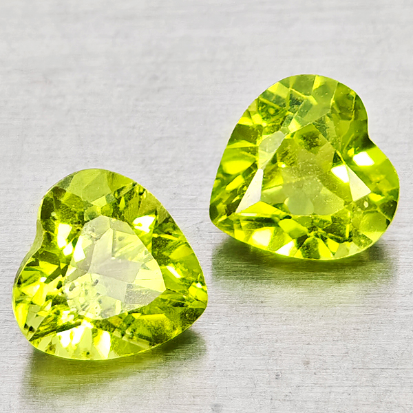 Natural Green Peridot 1.80 Ct. 2 Pcs Heart Shape 6.1 x 6.1 Mm Gemstones