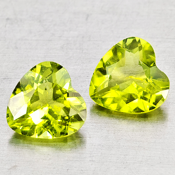 Natural Green Peridot 1.51 Ct. 2 Pcs Heart Shape 6.3 x 6.3 Mm Gemstones