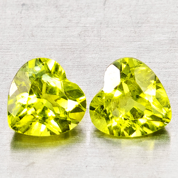 Natural Green Peridot 1.76 Ct. 2 Pcs Heart Shape 6.3 x 6.3 Mm Gemstones