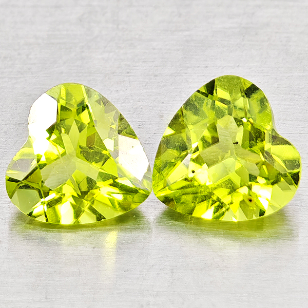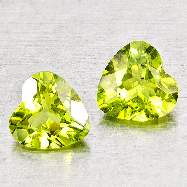 Natural Green Peridot 1.10 Ct. 2 Pcs Heart Shape 6.1 x 6.1 Mm Gemstones