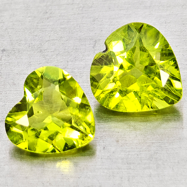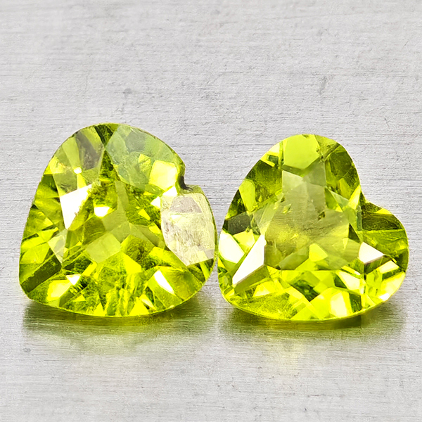 Natural Green Peridot 1.76 Ct. 2 Pcs Heart Shape 6.6 x 6.4 Mm Gemstones