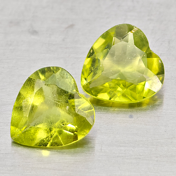 Natural Green Peridot 1.26 Ct. 2 Pcs Heart Shape 6 x 6 Mm Gemstones