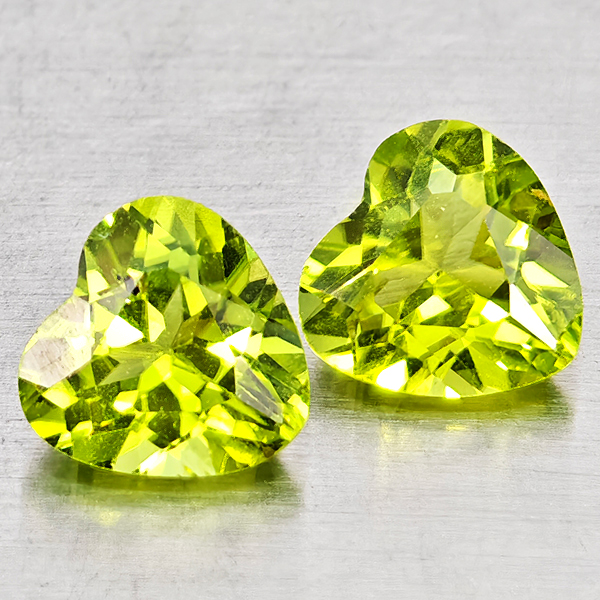 Natural Green Peridot 1.65 Ct. 2 Pcs Heart Shape 6 x 6 Mm Gemstones