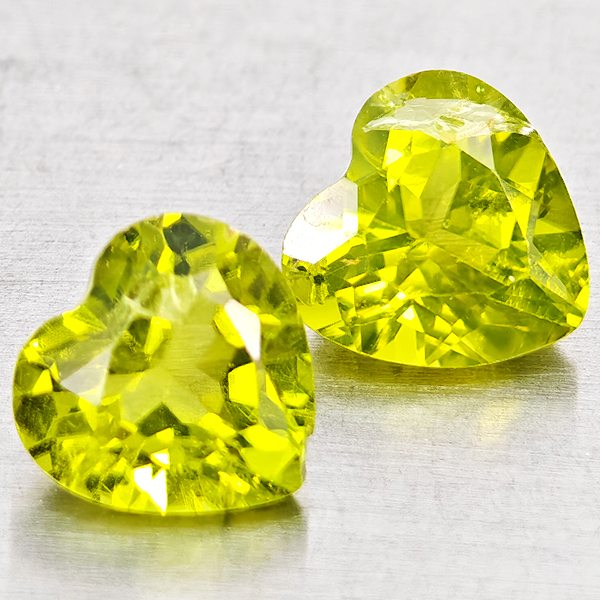 Natural Green Peridot 1.79 Ct. 2 Pcs Heart Shape 6.1 x 6.1 Mm Gemstones