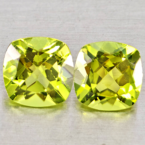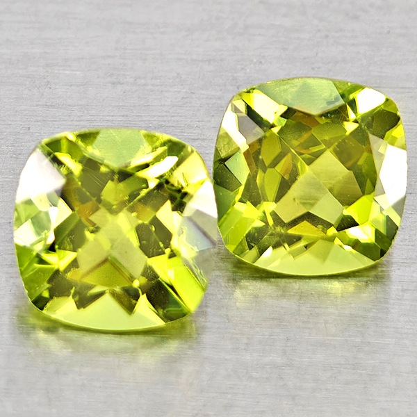 Natural Green Peridot 1.84 Ct. 2 Pcs Cushion Shape 6.1 Mm. Gemstones