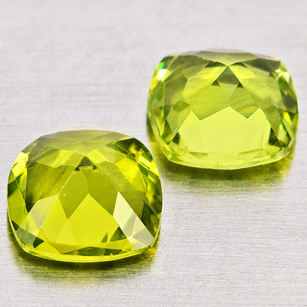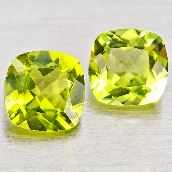Natural Green Peridot 1.62 Ct. 2 Pcs Cushion Shape 6 Mm. Gemstones
