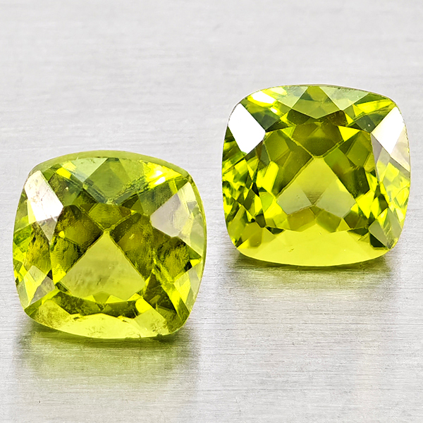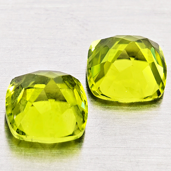 Natural Green Peridot 2.71 Ct. 2 Pcs Cushion Shape 6.3 to 4.5 Mm. Gemstones