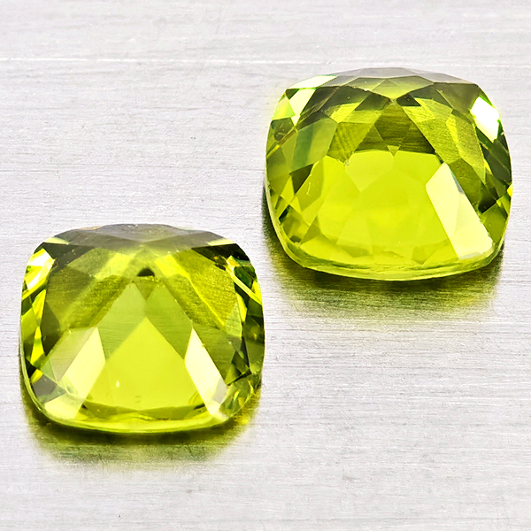 Natural Green Peridot 1.95 Ct. 2 Pcs Cushion Shape 6 Mm. Gemstones
