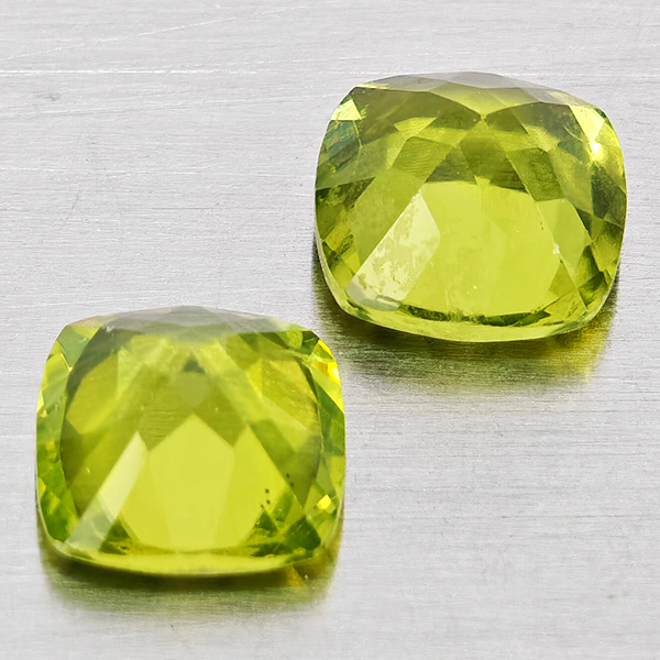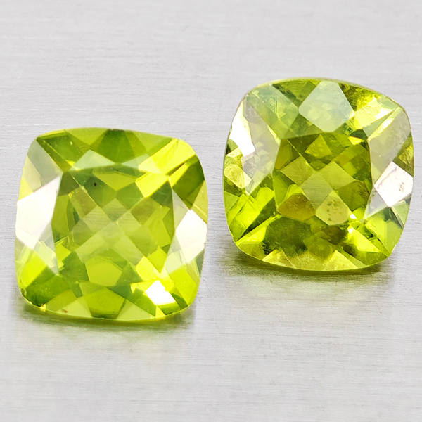 Natural Green Peridot 2.16 Ct. 2Pcs Cushion Shape 6.1 Mm Gemstones From Pakistan