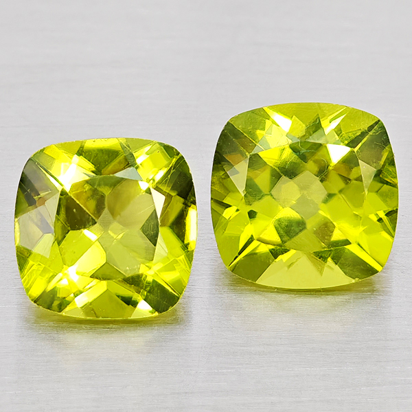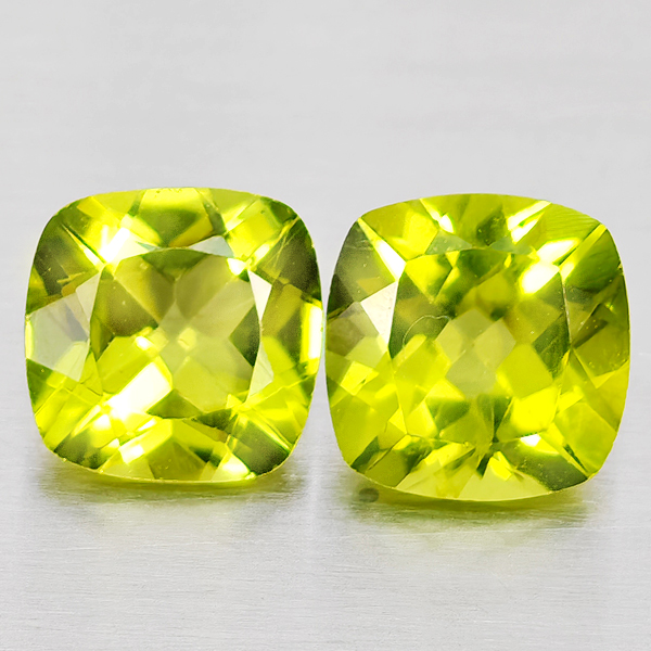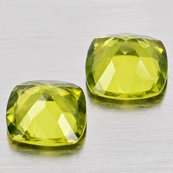 Natural Green Peridot 1.85 Ct. 2Pcs Cushion Shape 6.1 Mm Gemstones From Pakistan