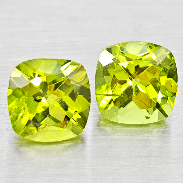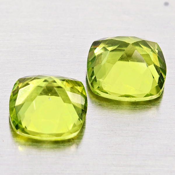 Natural Green Peridot 1.95 Ct. 2Pcs Cushion Shape 6 Mm Gemstones From Pakistan
