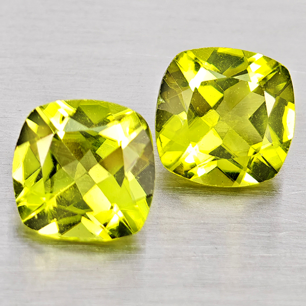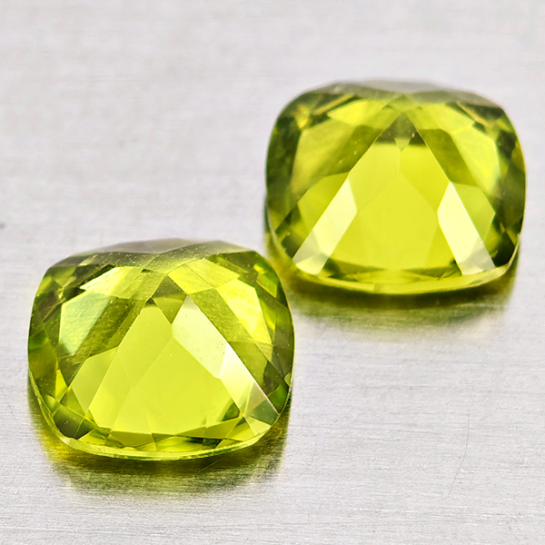 Natural Green Peridot 1.73 Ct. 2Pcs Cushion Shape 6.1 Mm Gemstones From Pakistan
