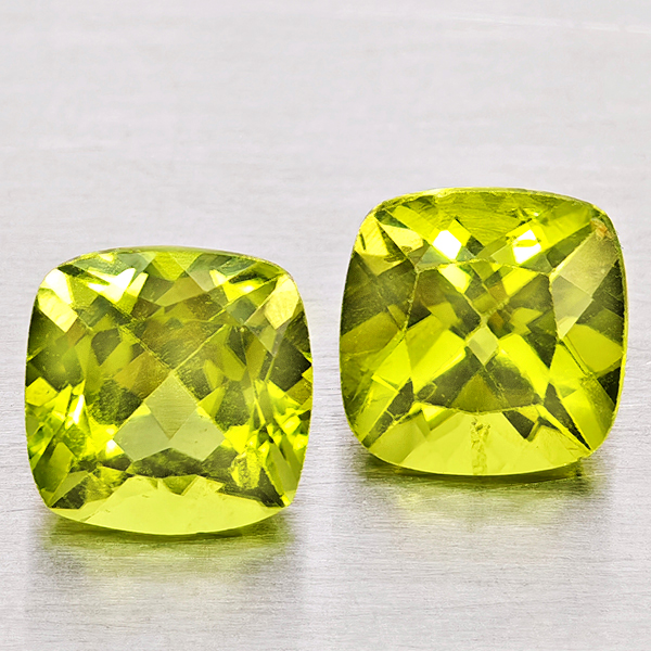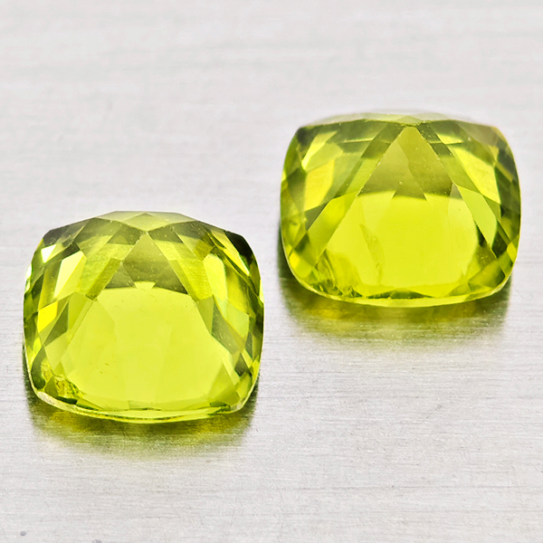 Natural Green Peridot 2.24 Ct. 2Pcs Cushion Shape 6 Mm Gemstones From Pakistan