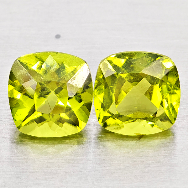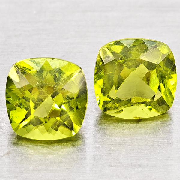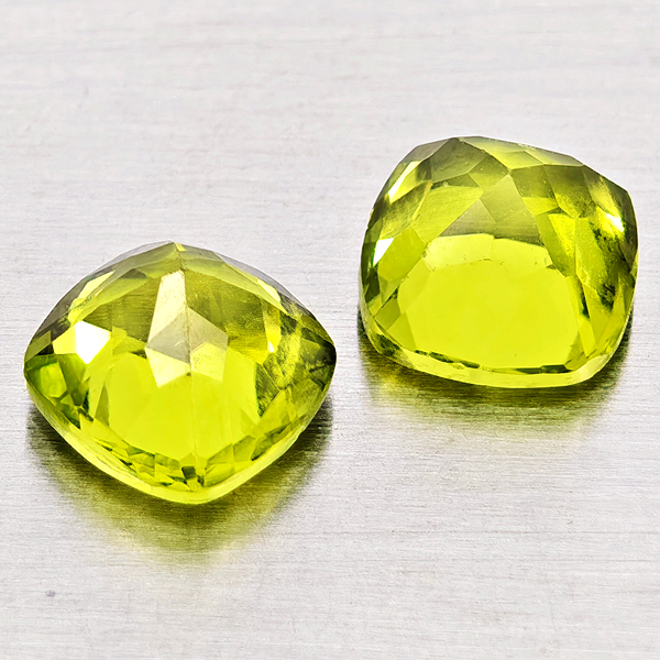 Natural Green Peridot 2.40 Ct. 2Pcs Cushion Shape 6.1 Mm Gemstones From Pakistan