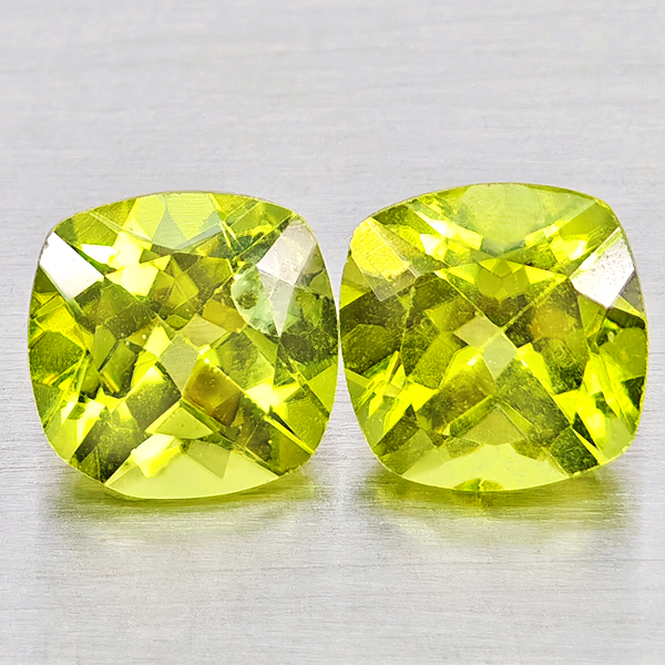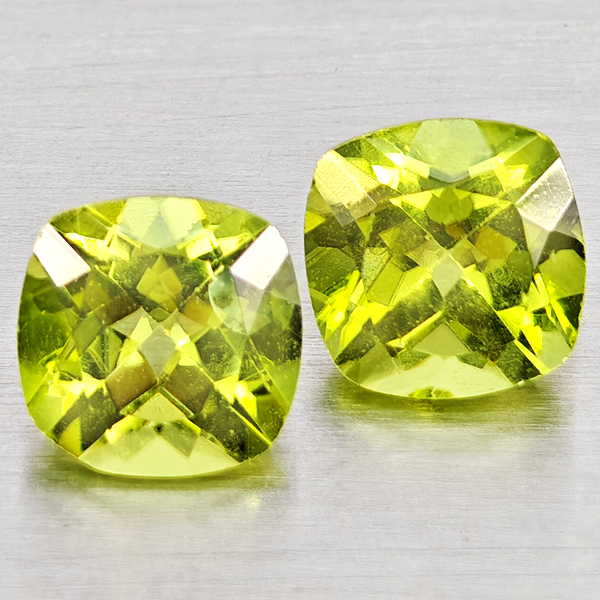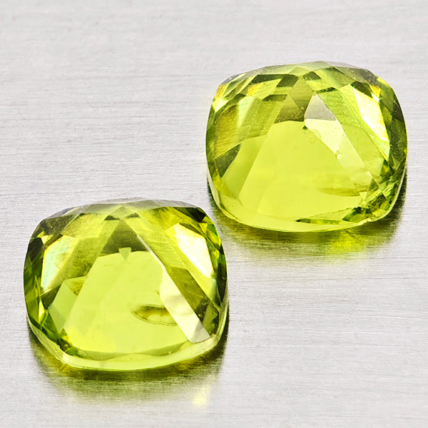 Natural Green Peridot 2.01 Ct. 2Pcs Cushion Shape 6 Mm Gemstones From Pakistan