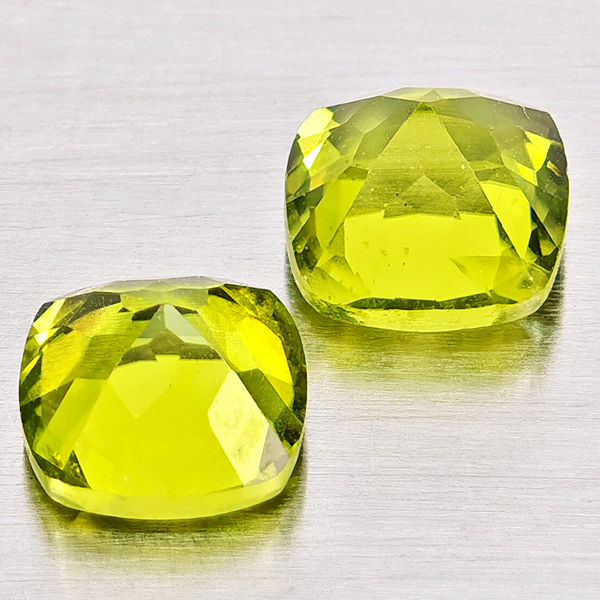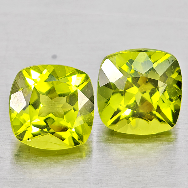 Natural Green Peridot 2.40 Ct. 2Pcs Cushion Shape 6 Mm Gemstones From Pakistan