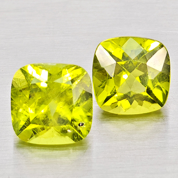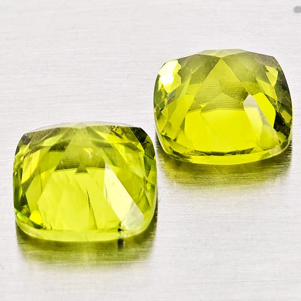 Natural Green Peridot 2.24 Ct. 2Pcs Cushion Shape 5.9 Mm Gemstones From Pakistan