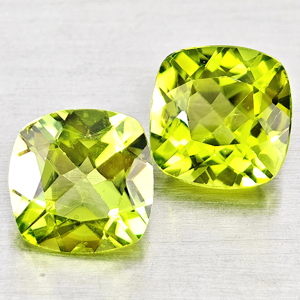 Natural Green Peridot 1.78 Ct. 2 Pcs Cushion Shape Gemstones from Pakistan
