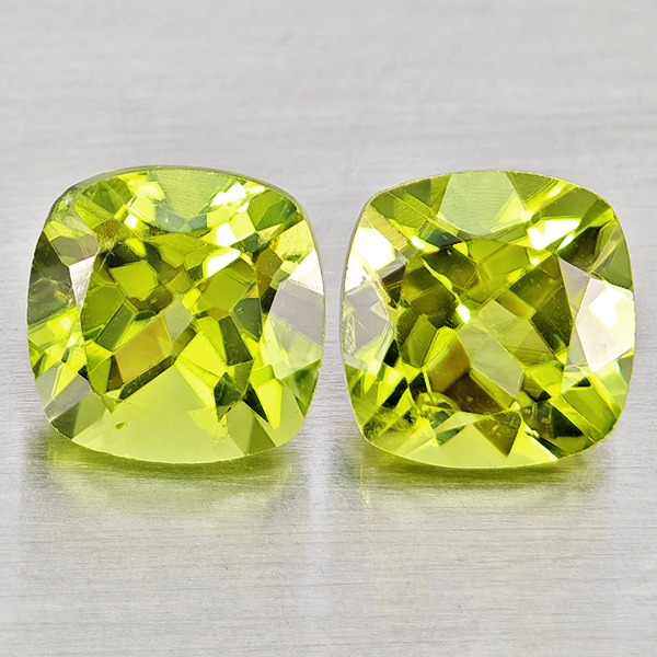Natural Green Peridot 2.01 Ct. 2 Pcs Cushion Shape Gemstones from Pakistan