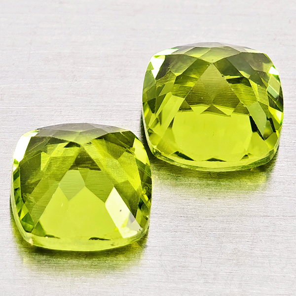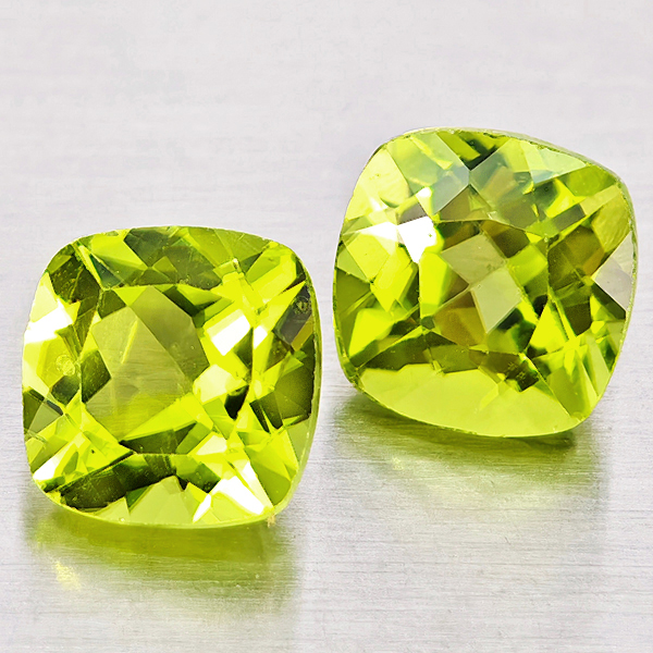 Natural Green Peridot 2.38 Ct. 2 Pcs Cushion Shape 6.1 Mm. Gemstones