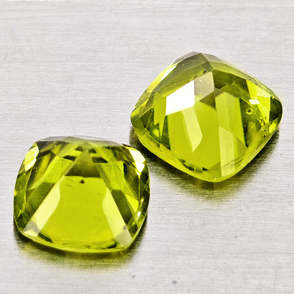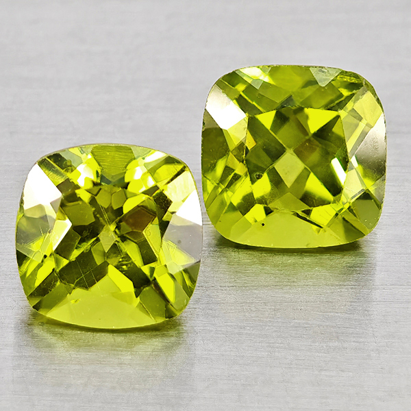 Natural Green Peridot 2.20 Ct. 2 Pcs Cushion Shape 6 Mm. Gemstones