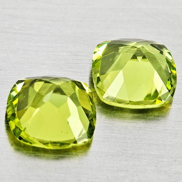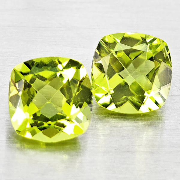 Natural Green Peridot 1.76 Ct. 2 Pcs Cushion Shape 6 Mm. Gemstones
