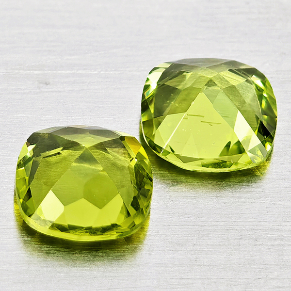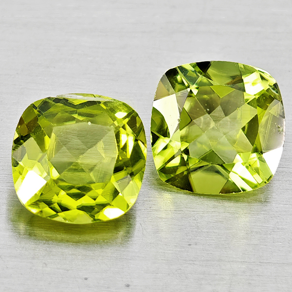 Natural Green Peridot 1.58 Ct. 2 Pcs Cushion Shape 6 Mm. Gemstones
