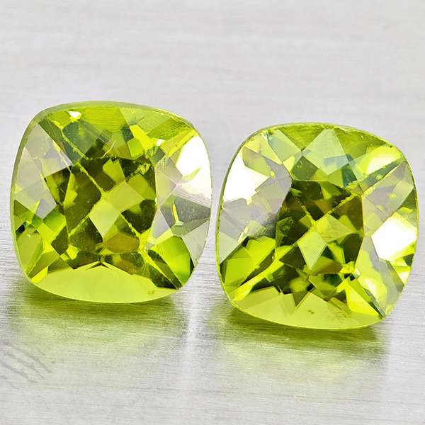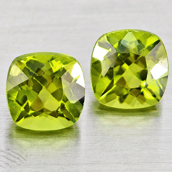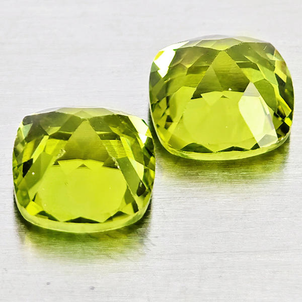 Natural Green Peridot 2.43 Ct. 2 Pcs Cushion Shape 6 Mm. Gemstones