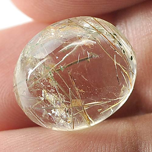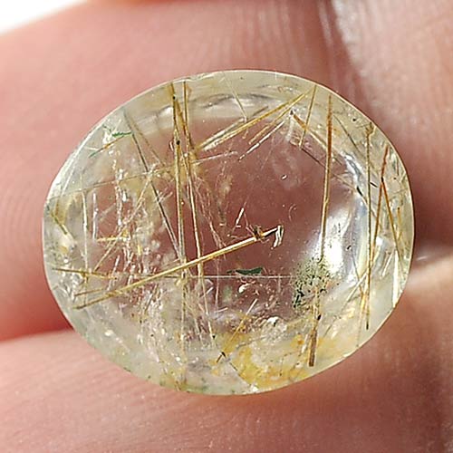 14.43 Ct. Natural White Gold Rutilated Quartz Oval Cabochon Unheated