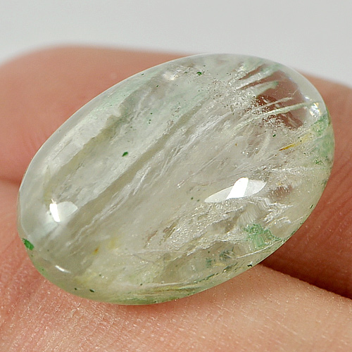 21.02 Ct. Natural White Green Moss Quartz Oval Cabochon Unheated