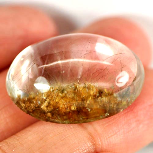 45.28 Ct. Vivid Color Natural White Brown Moss Quartz Oval Cabochon