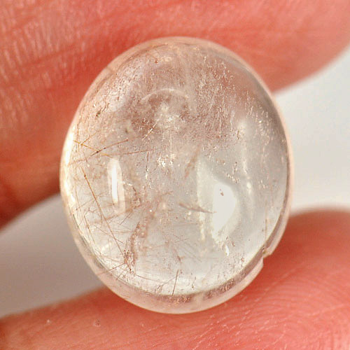 7.57 Ct. Oval Cabochon Natural White Brown Rutilated Quartz Gemstone