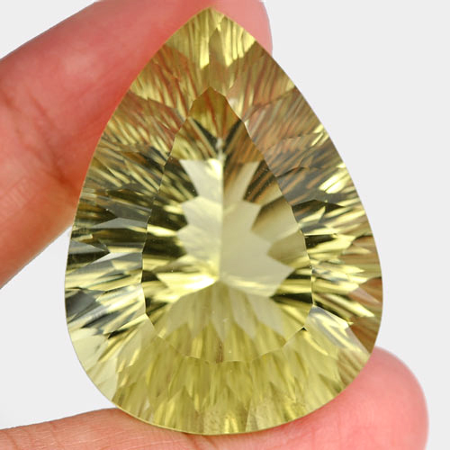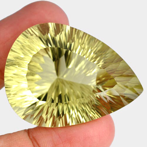 Yellow Lemon Quartz 88.55 Ct. Clean Pear Concave Cut 38 x 28 Mm. Natural Gem