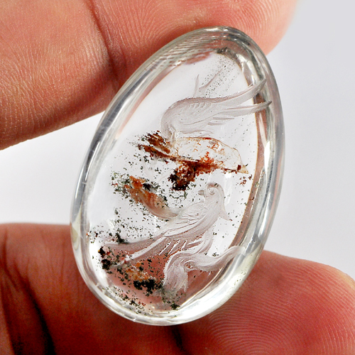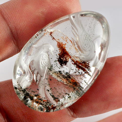 75.00 Ct. Good Birds Carving in Natural Moss White Quartz Unheated