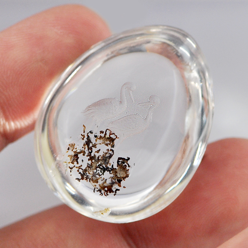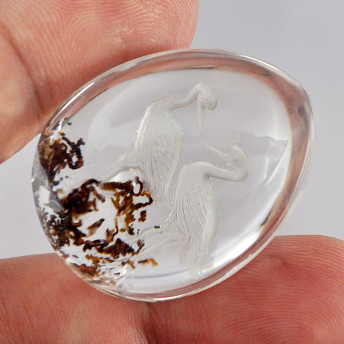 Moss White Quartz Birds Carving Inner Pear Cabochon Natural Gemstone 100.00 Ct.
