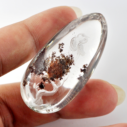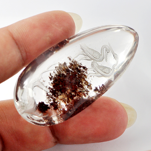Moss Quartz 125 Ct. Birds Carving Inner Pear Cabochon 49 x 23 Mm. Natural Gem